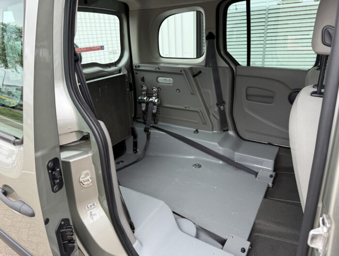 Deze Kangoo automaat is aangepast voor minder validen door Bierman middels de inrijplaat en vloerverlaging waarmee de rolstoel of scootmobiel gemakkelijk in de auto kan rijden en veilig vastgezet kan worden met alle gordels. Het is een 2 zits met 1 rolstoelplaats maar er kan ook nog een extra zitje ingebouwd worden indien gewenst. Een nette auto die we, met ons Top Afleverpakket (zie 1 van de foto's voor alle details), ook technisch weer in een topconditie aan u afleveren!.