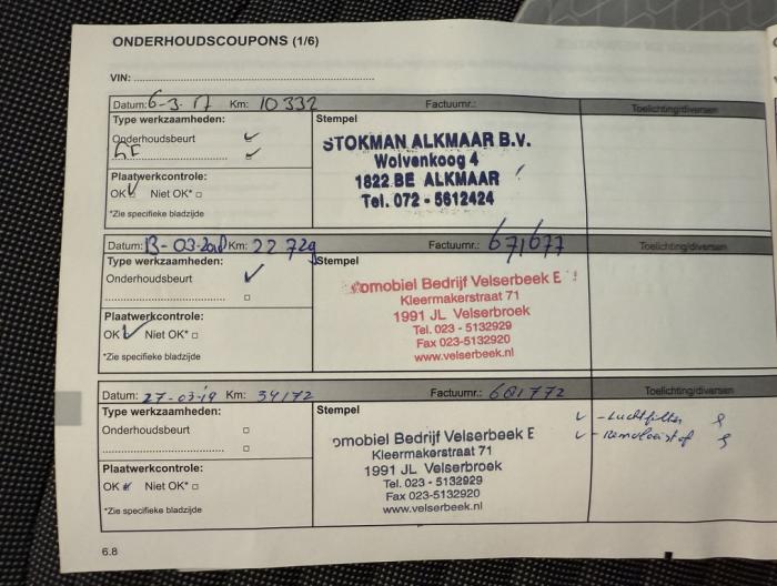| Onderhoudsboekjes: | dealer |