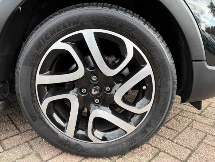 In 2015 kregen we deze origineel Nederlandse Captur binnen, destijds de meest luxe Dynamique met als opties het Pack City Camera (achteruitrijcamera, buitenspiegels elektrisch inklapbaar, parkeersensor achter), het Pack Style (extra getint glas achter, lichtmetalen velgen 17" Two Tone), stoelverwarming en de Sterzwarte metallic lak. Hij was toen ook al voorzien van de afneembare trekhaak, lederen bekleding, middenarmsteun en de sideskirts. Vanaf dat moment hebben we hem onderhouden. De multiriem moet weer vervangen worden in juni 2026 dus nemen wij, met ons tijdelijk gratis (!) Top Afleverpakket voor de aflevering voor onze rekening. De vorige eigenaar heeft er inmiddels all season banden door ons onder laten monteren en dat zijn de Michelin Cross Climate banden, dat zijn zomerbanden die zich in de winter gedragen als een winterband, eigenlijk beter dan all season dus. Bovendien zijn deze ook geschikt om in winterse omstandigheden in bijvoorbeeld Duitsland zonder problemen mee te rijden.