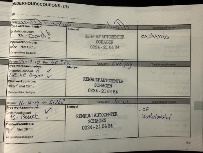 Zo kunnen wij aan de hand van het chassisnummer al veel controles doen. In het internationale Renault.Net intranet systeem (alleen inzichtelijk voor ons als dealers!) zien we de historie van de auto en dat vertelt ons al veel. Als de auto dan bij ons binnen komt, checken we nog veel meer! Is de staat zoals gezegd en te zien op de foto's? Zijn er verder bijzonderheden te zien? Voldoet hij echt aan de kwaliteit die wij willen leveren? Als we daarachter staan gaat de auto vervolgens onze werkplaats in, waar we ook onder de motorkap en aan de onderzijde checks doen.