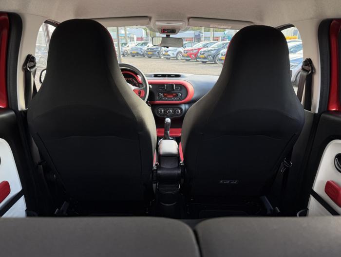 Eén particuliere eigenaar heeft deze origineel Nederlandse Twingo gehad! En die heeft gekozen voor een fraaie combinatie, de kleur Vlammend Rood met privacy glas en zwarte striping van buiten en van binnen het Pack Interieur Rouge met allerlei rode accenten en dat is verfrissend fraai. Met de R&Go app kunt u uw eigen telefoon laten samenwerken met de auto en op die manier allerlei auto info zien maar ook makkelijk navigeren, muziek streamen en uw contactpersonen bellen. Nog veel meer, zie de, overigens fictieve, foto's voor de mogelijkheden met de app. Een heerlijke auto met nog niet zoveel kilometers dus dat wordt nog vele fijne kilometers maken!.