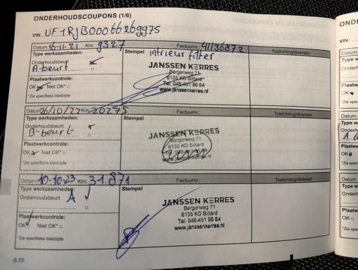 | Onderhoudsboekjes: | dealer |
