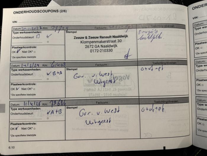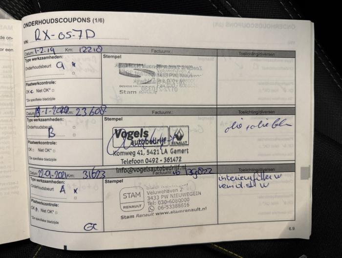Zo kunnen wij aan de hand van het chassisnummer al veel controles doen. In het internationale Renault.Net intranet systeem (alleen inzichtelijk voor ons als dealers!) zien we de historie van de auto en dat vertelt ons al veel. Als de auto dan bij ons binnen komt, checken we nog veel meer! Is de staat zoals gezegd en te zien op de foto's? Zijn er verder bijzonderheden te zien? Voldoet hij echt aan de kwaliteit die wij willen leveren? Als we daarachter staan gaat de auto vervolgens onze werkplaats in, waar we ook onder de motorkap en aan de onderzijde checks doen.