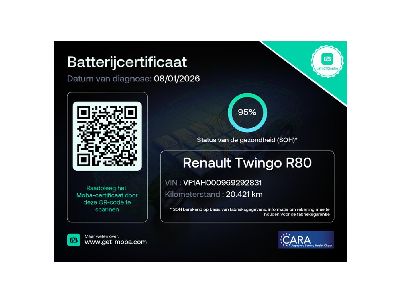 | Uitvoering: | R80 E-Tech Série Limitée Urban Night 22 kWh | panoramisch vouwdak | SoH 95% | camera | stoelverwarming | tijdelijk gratis Top Afleverpakket twv Eur 695 |
