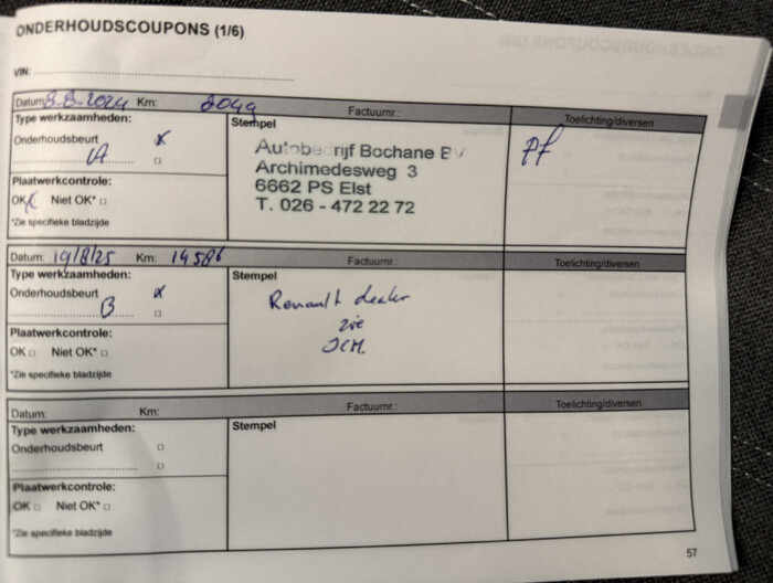 Zo kunnen wij aan de hand van het chassisnummer al veel controles doen. In het internationale Renault.Net intranet systeem (alleen inzichtelijk voor ons als dealers!) zien we de historie van de auto en dat vertelt ons al veel. Als de auto dan bij ons binnen komt, checken we nog veel meer! Is de staat zoals gezegd en te zien op de foto's? Zijn er verder bijzonderheden te zien? Voldoet hij echt aan de kwaliteit die wij willen leveren? Als we daarachter staan gaat de auto vervolgens onze werkplaats in, waar we ook onder de motorkap en aan de onderzijde checks doen.
