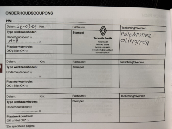 Zo kunnen wij aan de hand van het chassisnummer al veel controles doen. In het internationale Renault.Net intranet systeem (alleen inzichtelijk voor ons als dealers!) zien we de historie van de auto en dat vertelt ons al veel. Als de auto dan bij ons binnen komt, checken we nog veel meer! Is de staat zoals gezegd en te zien op de foto's? Zijn er verder bijzonderheden te zien? Voldoet hij echt aan de kwaliteit die wij willen leveren? Als we daarachter staan gaat de auto vervolgens onze werkplaats in, waar we ook onder de motorkap en aan de onderzijde checks doen.