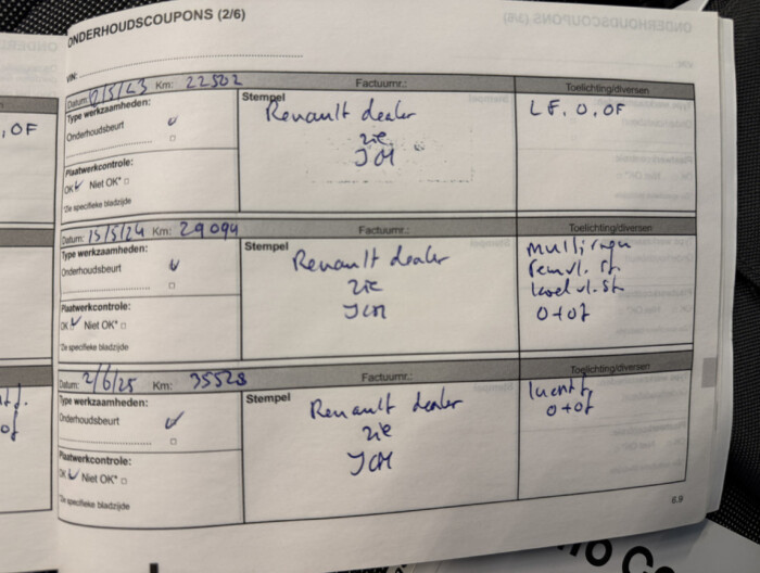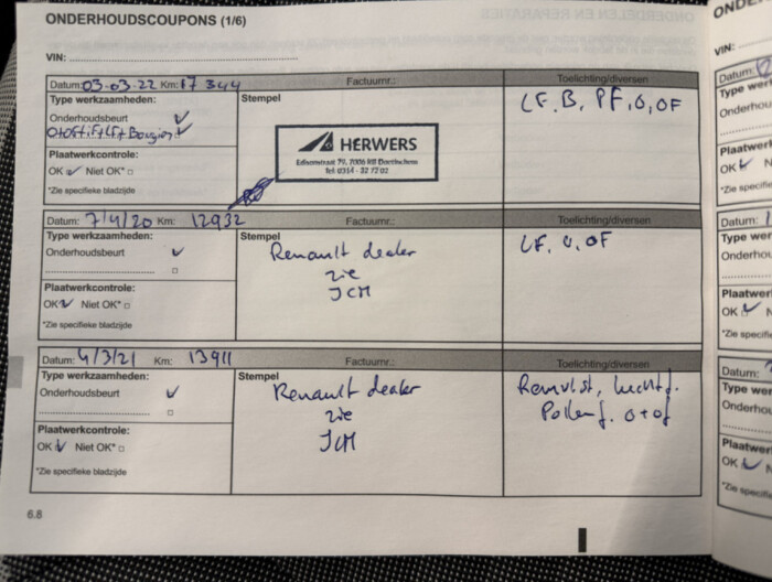 Zo kunnen wij aan de hand van het chassisnummer al veel controles doen. In het internationale Renault.Net intranet systeem (alleen inzichtelijk voor ons als dealers!) zien we de historie van de auto en dat vertelt ons al veel. Als de auto dan bij ons binnen komt, checken we nog veel meer! Is de staat zoals gezegd en te zien op de foto's? Zijn er verder bijzonderheden te zien? Voldoet hij echt aan de kwaliteit die wij willen leveren? Als we daarachter staan gaat de auto vervolgens onze werkplaats in, waar we ook onder de motorkap en aan de onderzijde checks doen.